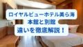 本館と南館の2棟に分かれており、どちらに泊まるか迷う方も多いですよね。